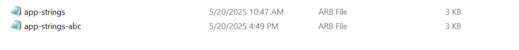 Note: When saving the duplicated file, ensure that you append a postfix indicating the language to the filename. For example, for French, the file should be named app_strings-fr.arb. This naming convention helps maintain clarity and organization, making it easy to identify the language associated with each localization file.