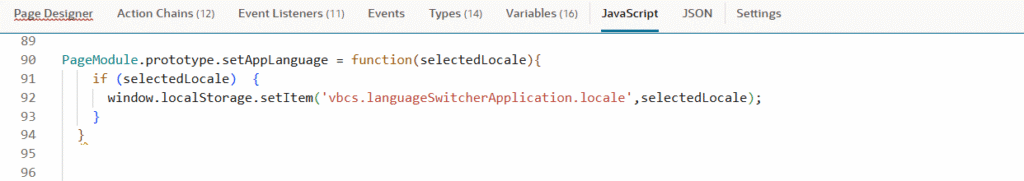 PageModule.prototype.setAppLanguage = function(selectedLocale) { if (selectedLocale) { window.localStorage.setItem(‘vbcs.languageSwitcherApplication.locale’, selectedLocale); } }